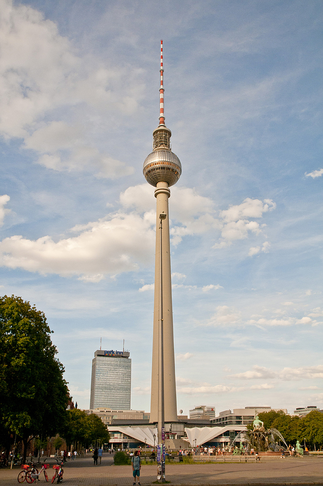 Телевизионная башня располагается в столичном районе Митте, недалеко от площади Александерплац. По этой площади башня получила своё второе неофициальное название, которое употребляется, чтобы не путать с телебашнями Шаферберг и Шольцплац, до 1991 года входивших в состав Западного Берлина. Это 368-метровое сооружение является самым высоким в Германии и занимает четвертое место по высоте в Европе. В 1969 году телебашня была второй по высоте в мире. Ежегодно сюда поднимается более миллиона посетителей, благодаря чему Берлинская телебашня вошла в десятку самых популярных достопримечательностей Германии.