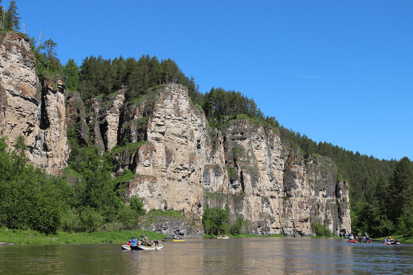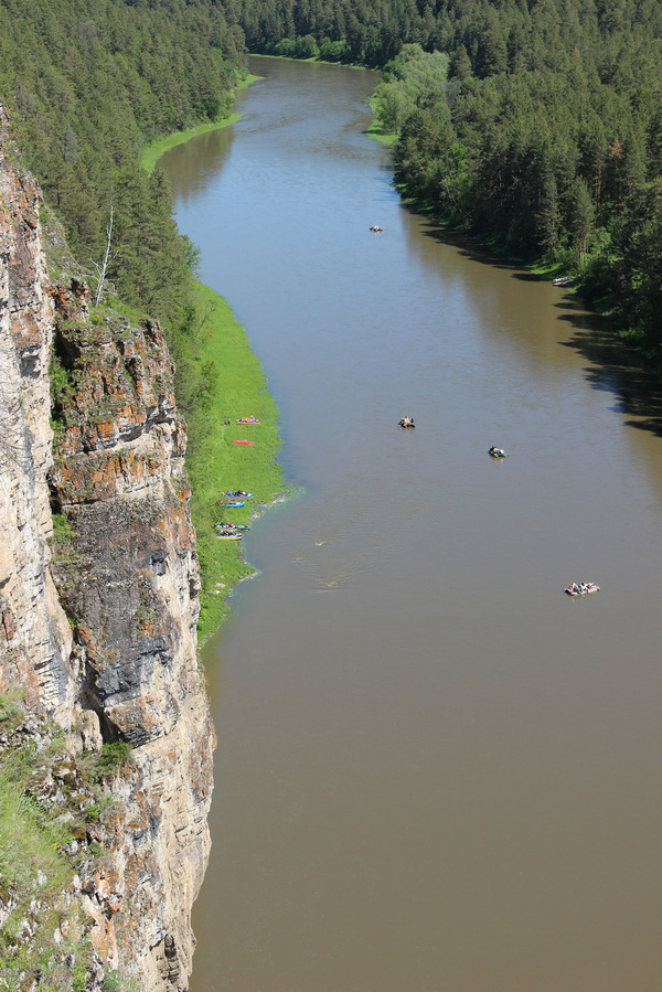 Самые красивые и примечательные места на реке сосредоточены на отрезке примерно в 50 км, течение у реки быстрое, скорость большая, за три дня успели три раза подняться на высокие берега ради шикарных видов Урала с высоты, и два раза спуститься в пещеры.