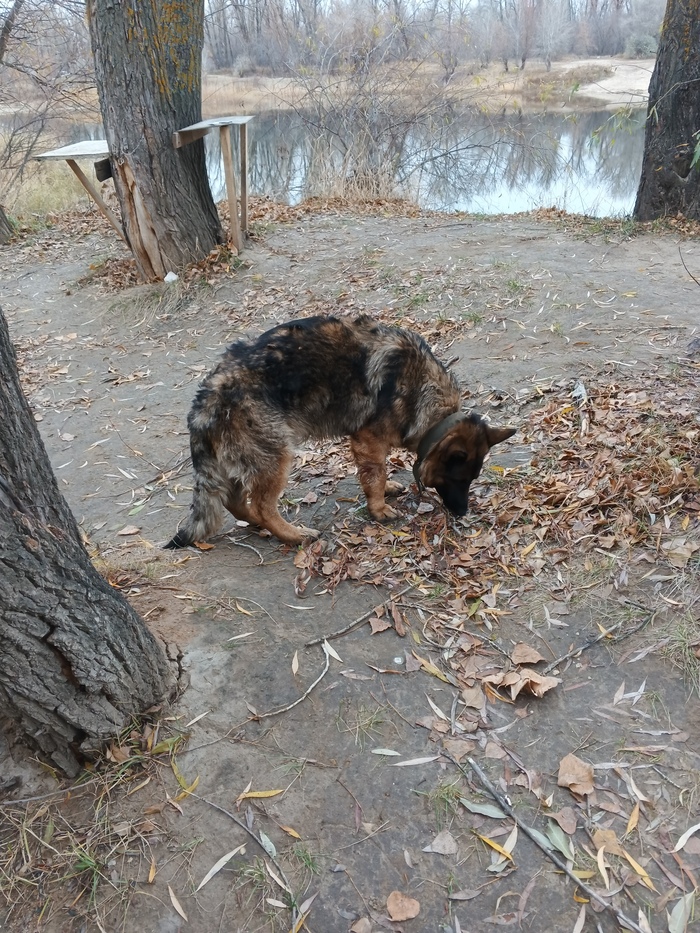 Окрестности Ленинска Волгоградской области у моста через Ахтубу пришел пес. Хлеб поел. Вызываю к силе пикабу. Правая передняя лапа в крови, прихрамывант на нее. Шерсть в репьях. Брезентовый ошейник. Может кто-нибудь ищет его.