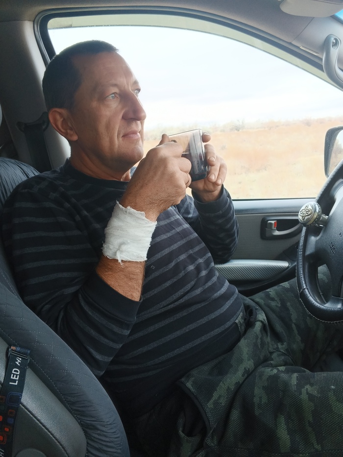 На выезде из Ахтубинска и за ночевали, на площадке с фурами. Искать в темноте поляну не стали. Температура около нуля. Периодически просыпался от звука пролетающего самолета. Справа от дороги, вдалеке, зажигается и гаснет линия из красных огней, видимо аэродром. Начнет свететь, поедем. Пока ждем рассвет, два молодых парня из рядом стоящей фуры, совершили утренний намаз, или что там у них. Наверное и нам пора в путь. Светает.