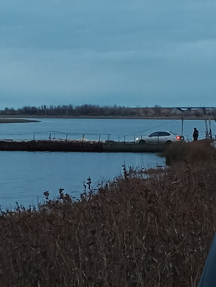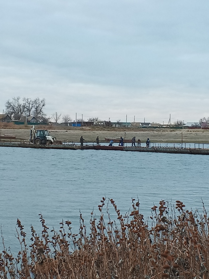 Возле деревни Топал остановились. Рядом понтонный мост через Ахтубу.