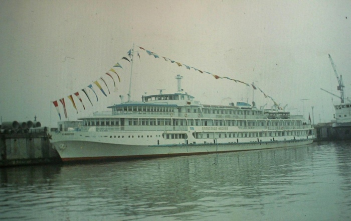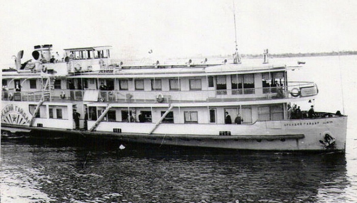 Пароход колесный Аркадий Гайдар. В 90х на нем был пожар сильный. Участь как и многих других кораблей - отправлен на слом.