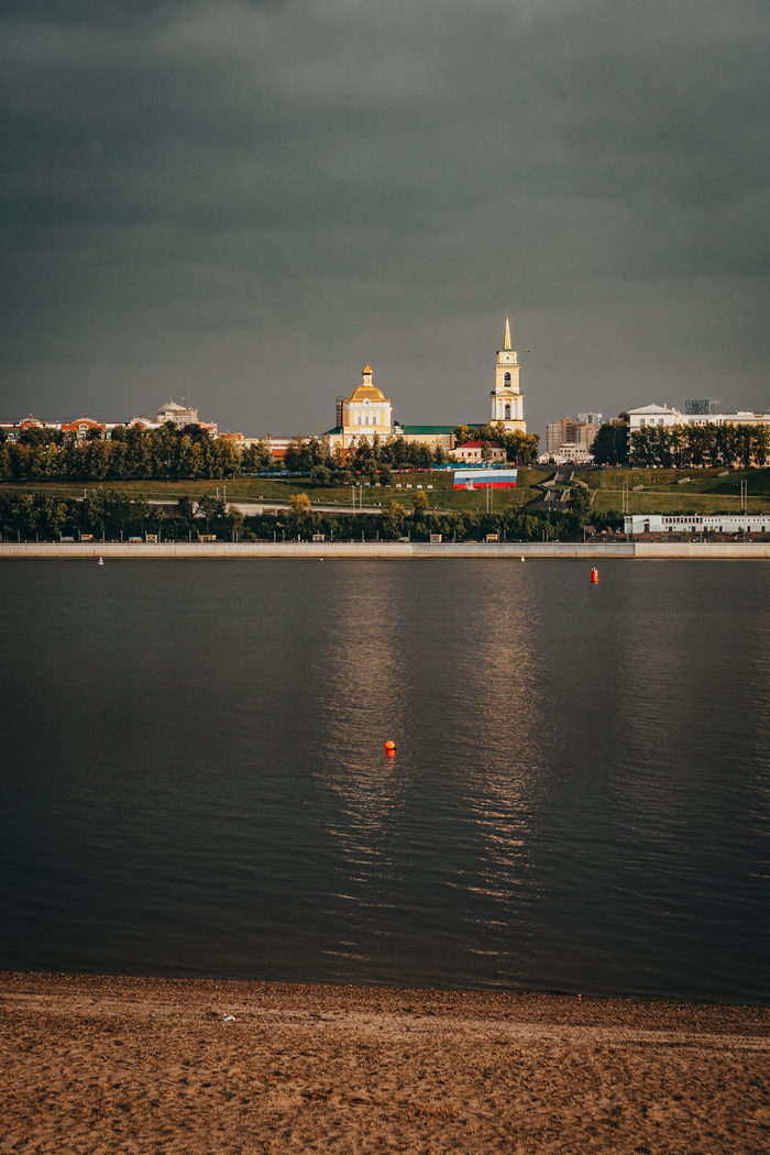 Все три собора видно за прудами: Спасский, Никольский и Покровский.