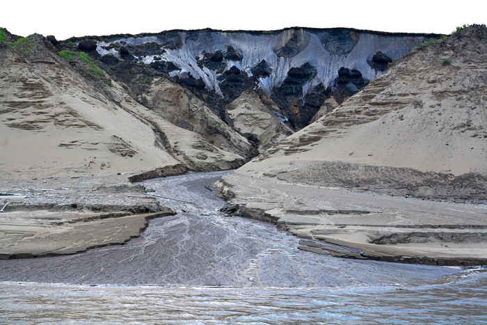 Открытые линзы многолетней мерзлоты на острове Самойловский