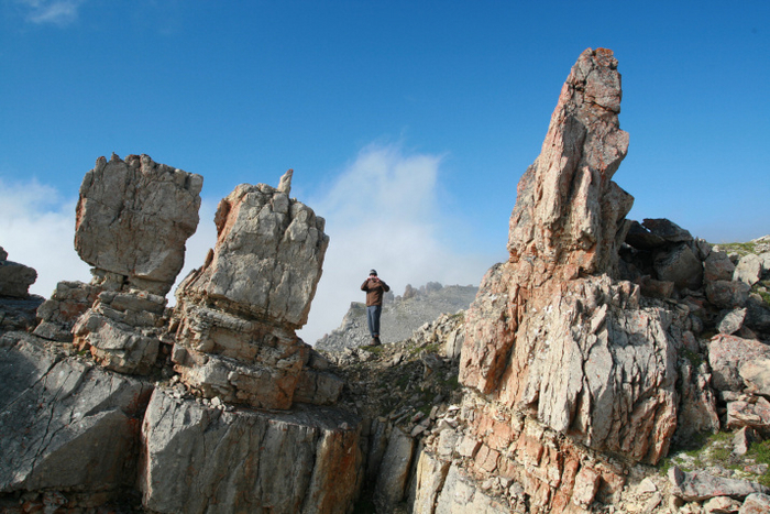 На правом берегу дельты Лены между островами Тит-Ары и Столб расположены величественные обрывы, свидетельствующие об активных геологических процессах в далёком прошлом — около 280 млн лет. Здесь можно видеть надвиговую пластину гигантских размеров, сложенную разными по цвету породами ― светлыми песчаниками и тёмными алевролитами, напоминающую исполинский слоёный пирог. Чуть ниже по течению от Тит-Ары на правом берегу возвышается каменный "город" — живописное скопление останцев выветривания. В обрывах на поверхности песчаников и доломитов можно увидеть остатки древних кораллов и моллюсков-брахиоподов.