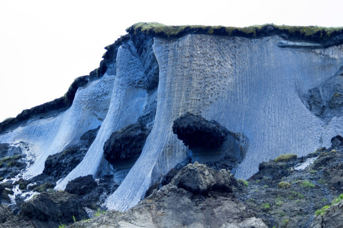 Характерная черта мёрзлых пород ― высокая льдистость. Руководитель экспедиции 1809–1811 годов на Новосибирские острова Матвей Геденштром писал, что высокие крутые берега островов состоят из перемежающихся слоёв земли и льда. Знаменитая Земля Санникова, открытая полярными исследователями Яковом Санниковым и Эдуардом Толлем и впоследствии больше никем не виденная, могла состоять на 90% изо льда, сверху прикрытого маломощным слоем грунта. Вероятно, она просто растаяла, как и другие острова моря Лаптевых: Семёновский, Васильевский, Фигурина, Меркурия.