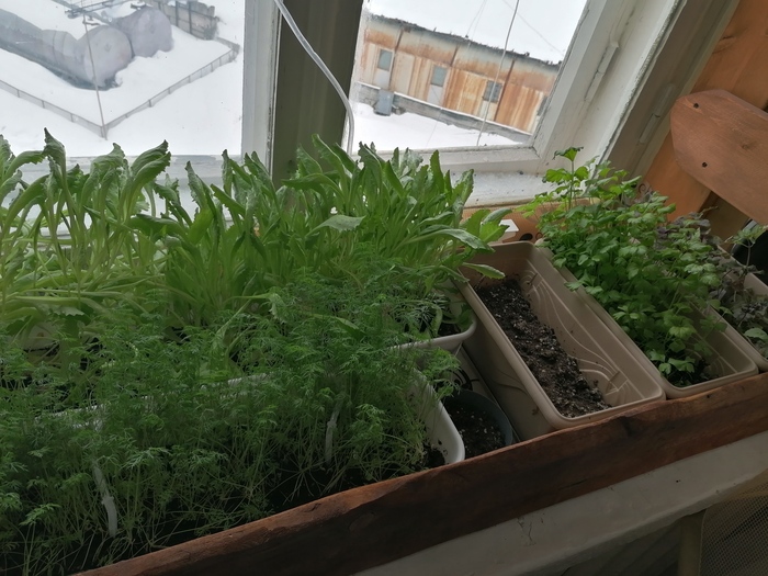 Ещё я учусь выращивать зелень на окне (зимой она крайне необходима), а недавно даже посадила специальные сорта помидоров, перца и огурцов, посмотрим получится ли из этого что-нибудь или кот перекапает раньше))