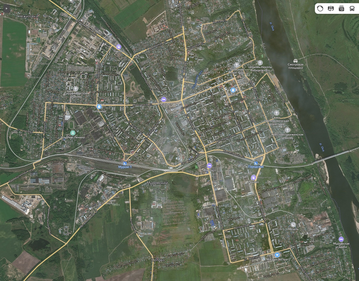Карта Мурома. Аппендикс жд хорошо виден посередине.