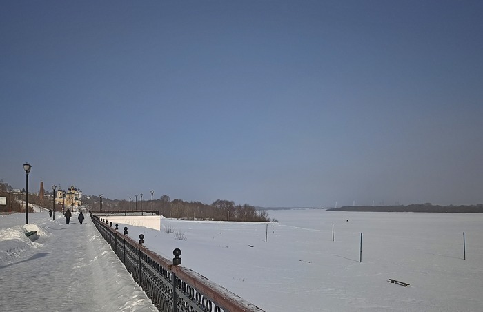 Надо отметить, что с коренного берега пейзажи скрадываются порослью американского клена. Диалектика: власти кронируют тополя вдоль главных улиц, зато на таком месте, как набережная, наоборот, пускают все на самотек.