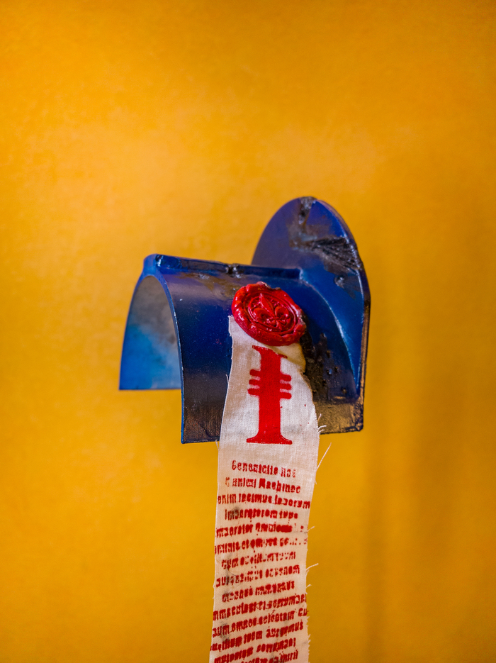 Для "печати" литайний сделал таблички с отзеркаленными текстами имперских и марсианских молитв, и при помощи краски и самодельного пресса перенес их на ткань (RIP моя льняная рубашка).