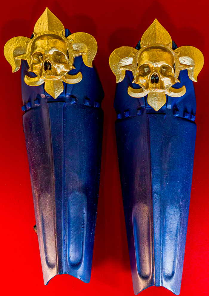 Много кто знает – по Вархаммеру существует огромное количество миниатюр. Еще больше на разных сайтах вы можете найти деталей для кастомизации этих самых миниатюр. Минус только в том, что это файлы для миниатюр… И значит, придется искусственно менять им размеры примерно на 2500% – для того, чтобы нормальный живой человек смог надеть их на себя. В частности, в нашем костюме такие детали – наплечники с черепами, гало над головой сороритки и голова орка. Изначальный размер наплечников – около 5мм в высоту, гало – около 3мм (было нагло отрезано у миниатюры имперской статуи). Это ведет к проблемам с детализацией и потом выливается в большое количество труда по обработке. Про то, что все детали надо подгонять по форме, изгибам и размерам, я уже написал.