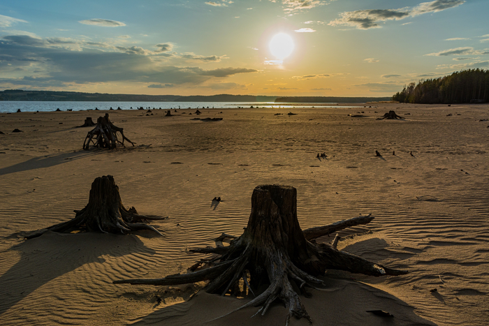 Просто пляж с пнями, который для себя назвал "Пляж Пном-Пень". Говорят ночью они движутся, но очень медленно.