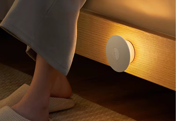 Ночной светильник Xiaomi Mijia реагирует на движение, автоматически включая мягкое тёплое освещение, когда кто-то проходит мимо. Регулируемая яркость создаёт уютную атмосферу, не раздражая глаза и не мешая сну.