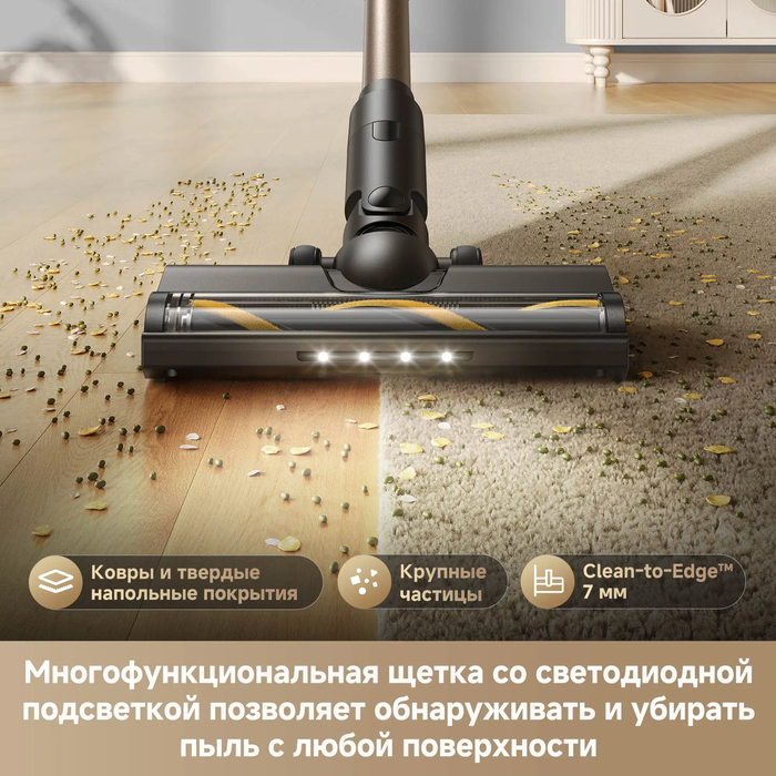 ✨ LED-подсветка помогает находить пыль и мусор в тёмных углах комнаты.