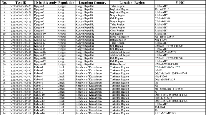 Многие исследования древней ДНК показали, что распространение отцовских линий R1a1a-M17 и R1b-M269 согласуется с экспансией индоевропейских популяций, и это может быть связано с разнообразными сублиниями R1a1a-M17 в Центральной Азии. Кроме того, гаплогруппа G-M201, вероятно, также происходит от индоевропейцев. Однако основываясь на ранее опубликованных генетических данных древних и современных популяций, авторы предполагают, что наличие в Центральной Азии некоторых линий Q-M242, N1a1-M46, R1a1a-M17 и C2a1b1-F1756 может быть связано с миграцией тюркских народов. А монголоязычные популяции привнесли в Центральную Азию линии C2a1a3-M504, отдельные C2a1b1-F1756 и сублинии C2a1a2a-M48. Во время миграции с Востока на Запад, на протяжении сотен лет, многие отцовские гаплогруппы распространились из Восточной Азии в Центральную Азию, включая несколько сублиний D-M174, C2a-F1096 и O-M175. В целом из-за высокой скорости мутаций Y-хромосома легко образует специфические для популяции сублинии или субклады, как кому удобнее.