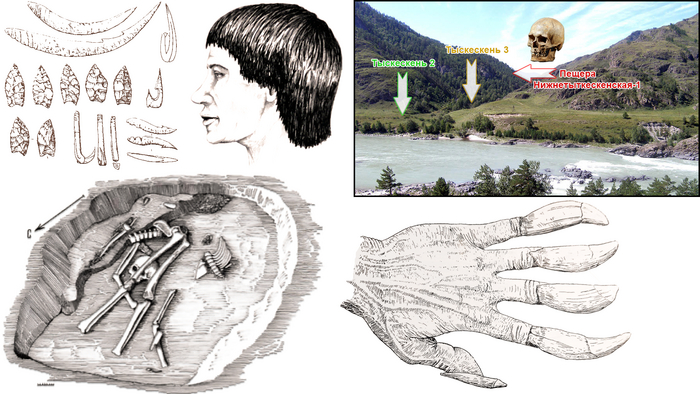 Генетические данные человека из пещеры Нижнетыткескенская-1, также представлены в этом исследовании. Подобный комплекс признаков отмечается также на неолитических черепах из могильников Базаиха и Долгое Озеро в Красноярско-Канской лесостепи.