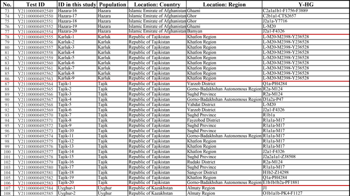 Основной целью авторов работы было выявление на основе полноразмерных последовательностей Y-хромосом общих закономерностей в отцовских генофондах. После чего идентифицировать отцовские линии, которые почти уникальны для какой-то конкретной популяции, и проанализировать их демографическую историю. В частности, исследователи оценили различные периоды генетического обмена и расхождения среди древних популяций в Центральной Азии.