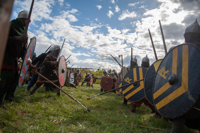 В тот день состоялся нешуточный бой на ристалище, народ махал мечами и защищался щитами, выкрикивал боевые кличи. Вокруг собралась огромная толпа, желающая посмотреть на средневековое сражение. Кто-то выбрал себе фаворитов и активно поддерживал их, а кто-то молча наслаждался происходящим. Просто сумасшедшие бои, несколько десятков людей сражались, используя отточенные годами действиями, и дрались они с такой отдачей, что ты забывал, что это всё реконструкция.