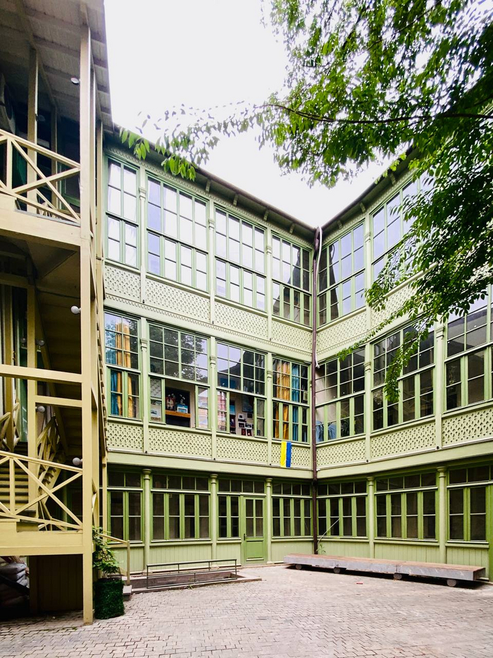 Тут успели отреставрировать первый этаж, а второй еще нет.