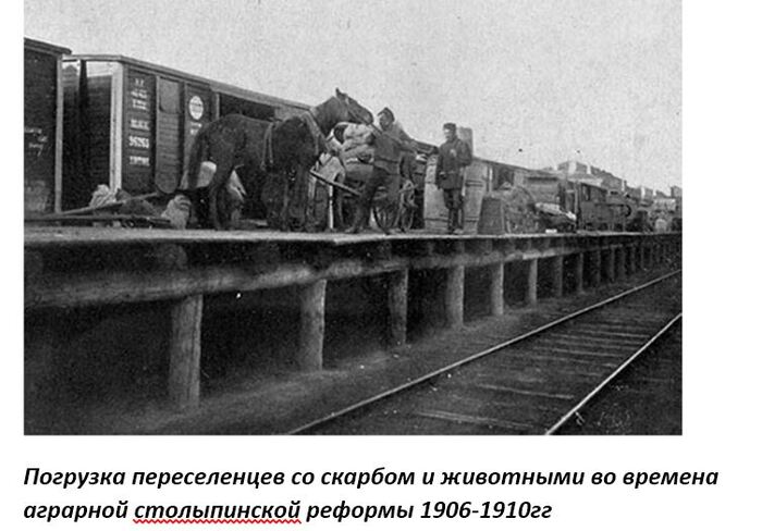 Как известно, царское правительство ассигновало значительные средства на расходы по устройству переселенцев на новых местах. Семьям переселенцев предоставлялся льготный железнодорожный проезд с багажом, для них даже разработали специальные вагоны, с торца которых имелись подсобные отсеки для перевозки скота и сельхозинвентаря.