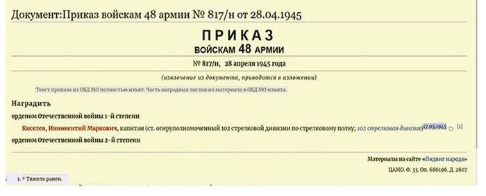 №817\н о награждении от 28 апреля 1945 года заметила, что напротив фамилии