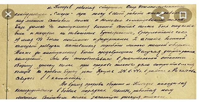 « т. Киселёв, работая старшим Оперуполномоченным контрразведки «СМЕРШ» при полку, в своей работе много работал над личным составом полка и помогал командованию полка.