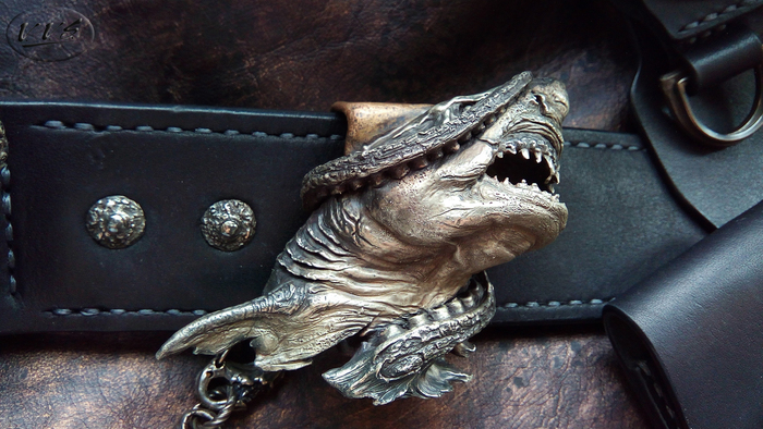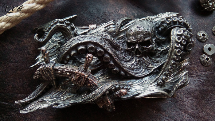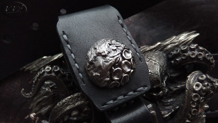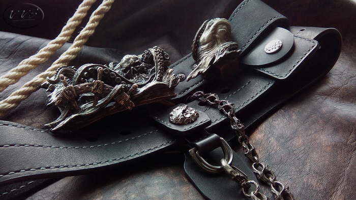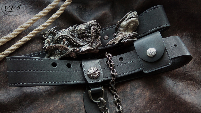 Кожаный ремень мужской с пряжкой ручной работы / Кракен / или / Ктулху /