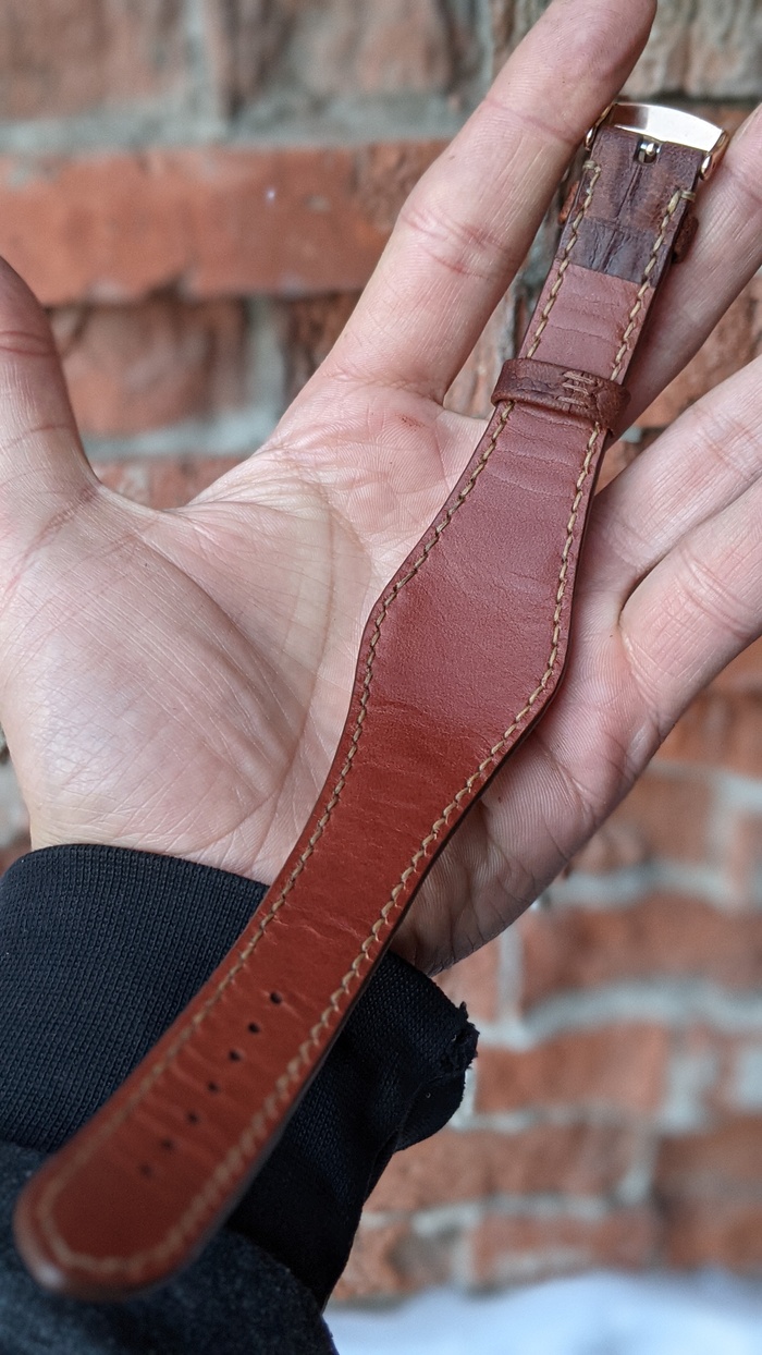 Ремешок напульсник для часов Certina Certina DS CASCADEUR. Родной ремешок был утерян и судя по фото в интернете, он был с пластиковой вставкой. Но решение нашлось само собой. Напульсник пожелал смастерить сам владелец часов.