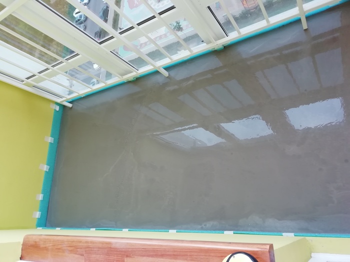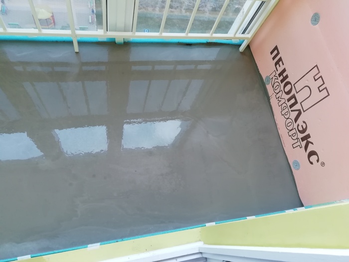Закрепил демпферную ленту по полу и залил наливной пол.