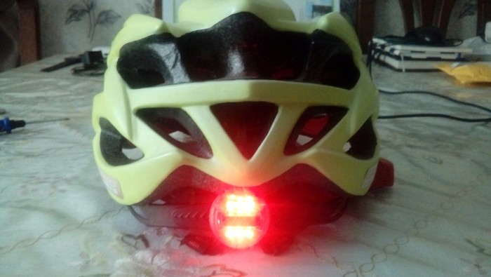 Пользуюсь вот таким китайским шлемом четвертый год. Сзади имеется колесико для регулирования размера. Внутри него маленький габарит в 3 режимах. Прослужил он мне 1,5 года после чего начал потухать. И вот стал совсем незаметным. Пришлось купить пару-тройку габаритов на велосипед. Но габариты имеют свойство разряжатся.