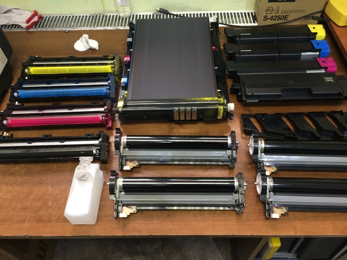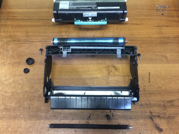 Очищаем ролик, перебиваем фотик, снимаем ракель. Все засрано
