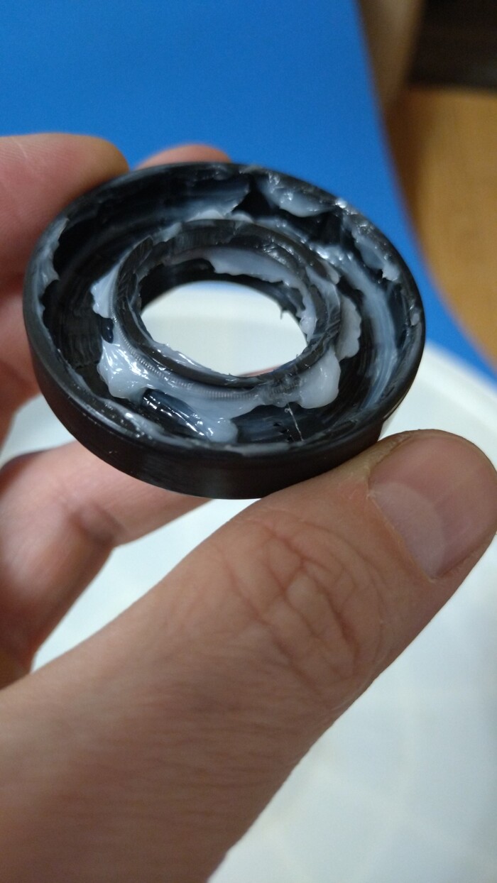 В глубине наблюдаем слегка ржавый подшипник. Люфта у него нет, но при вращении слышен гул, износ присутствует.