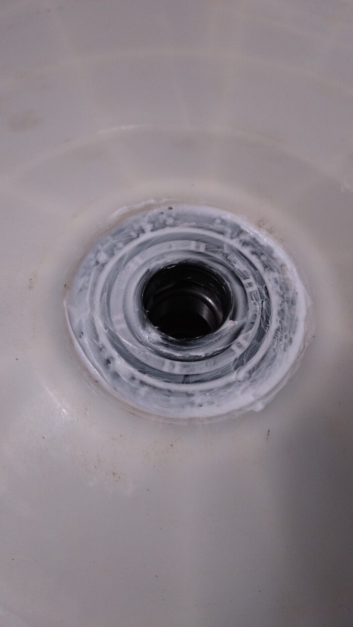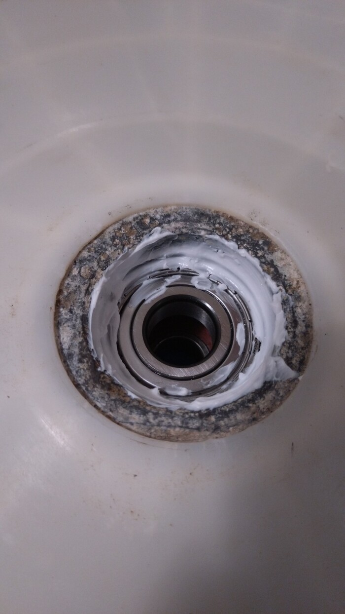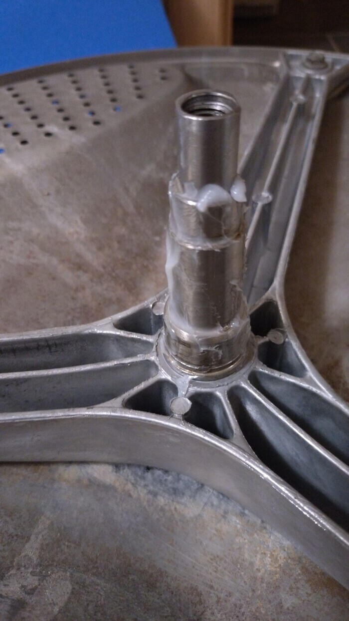 Далее разбираю бак, снимаю барабан. Шток крестовины возле основания имеет следы ржавчины, значит сальник действительно не держит воду. Выковырял его отверкой, в процессе он развалился в труху. Фото сделать я не догадался. Под сальником обнаружилась куча грязи, окислившийся металл и накипь. Вот как выглядит после очистки.