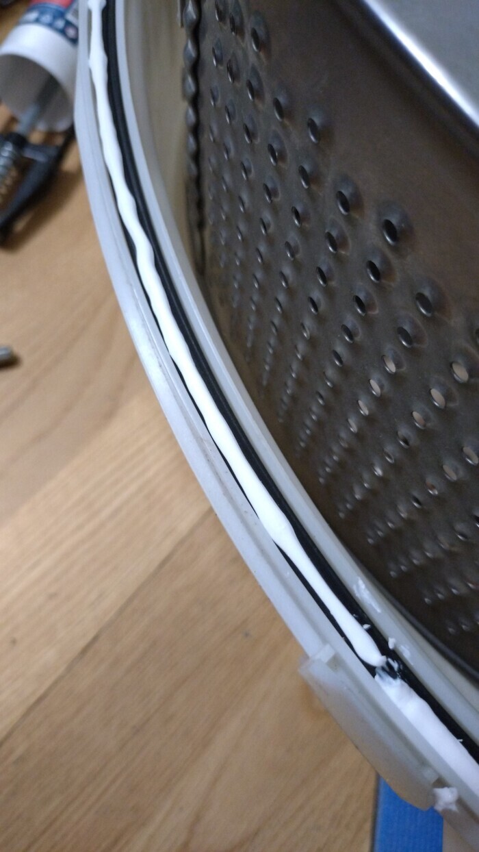 Так же в целях предотвратить возможные протечки бака наносим герметик на соединение половинок бака. Это логично, уплотнительная резинка за 20 лет уже подустала.