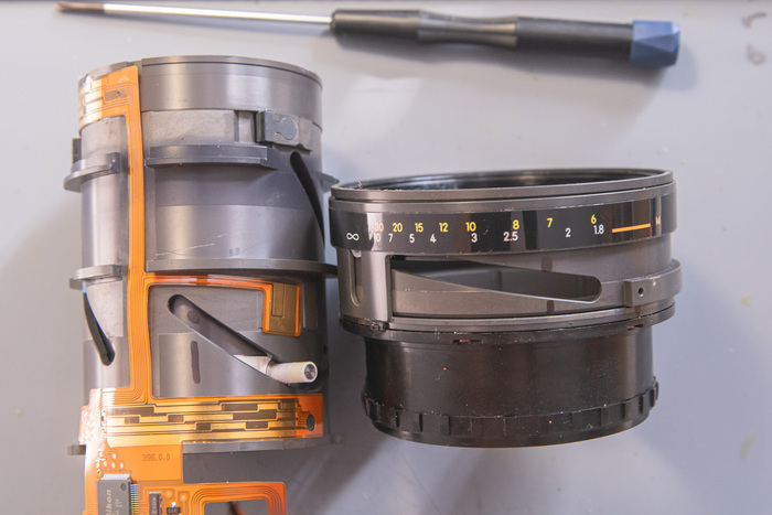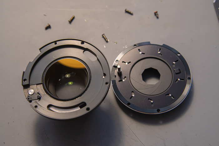 Диафрагма и внутренний линзоблок держатся на обычном стопорном и очень топорном кольце. Обычно как то более технологично.