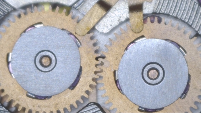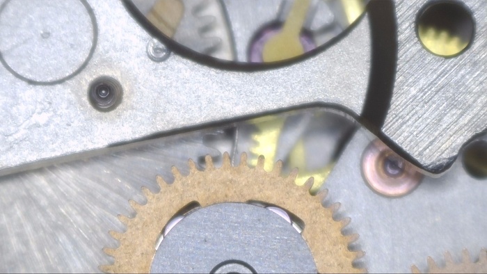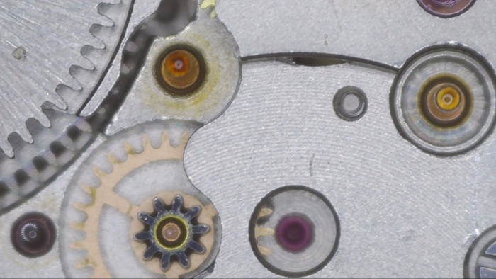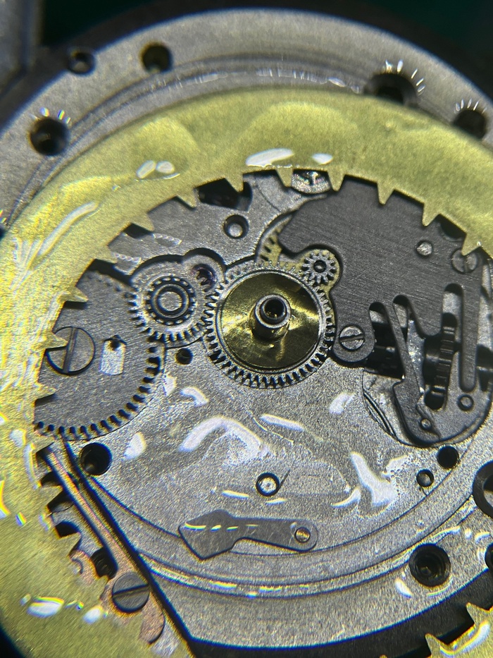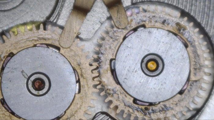 Минутное колесо со следами загрязнений и старой смазки