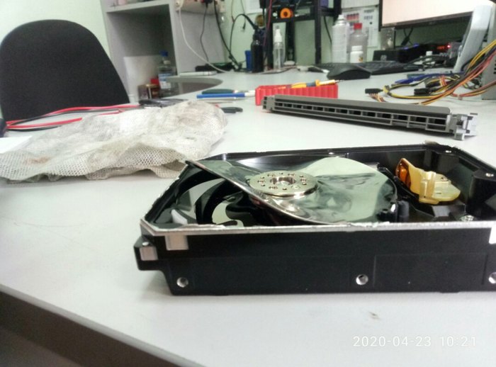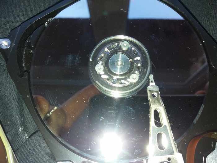 Говорю пусть тащит. Притаскивает башню и отдельно в пакете HDD. Говорит мол разбирал его и хотел прочистить. Я сначала решил что он плату отделял. Потом когда увидел то был впечатлен его замыслами. Он снимал крышку. Я ему:" Это уже точно пизда!" Он:"ну глянь , может хоть данные удастся спасти?" Занес домой поднял крышку :