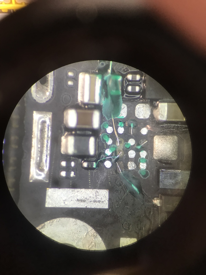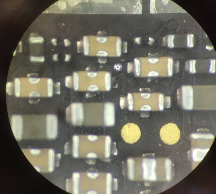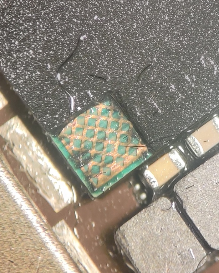 Немного посмотрев и подумав над межслойными обрывами, стало понятно что особого смысла ковырять плату и припаиваться к ним смысла нет, придётся кидать перемычки. Надо будет объяснить хозяину телефона эти нюансы. Но для начала надо убедиться, что аппарат хотя бы включается и действительно есть смысл делать подсветку.