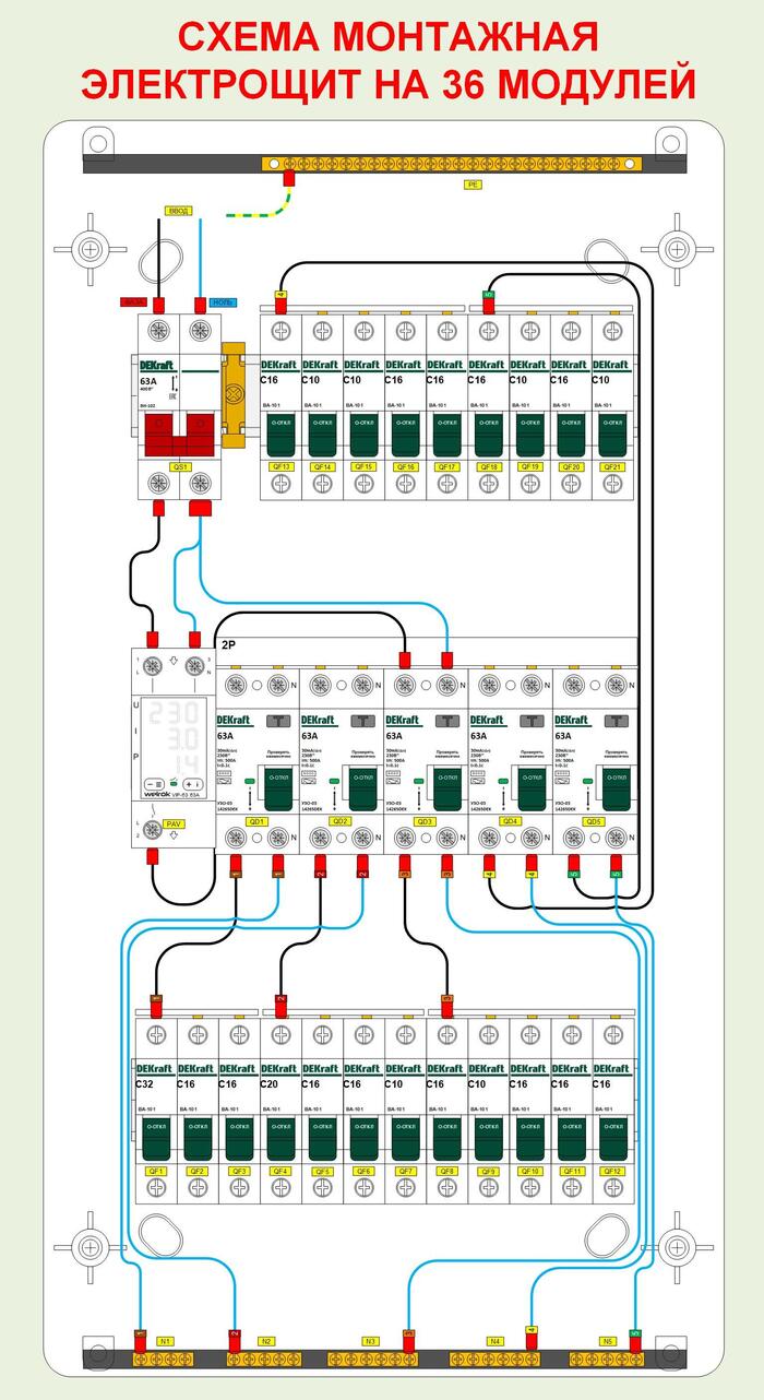 К счастью, больше никаких явных ошибок в монтаже щитка выявлено не было и я получил такой готовый результат:
