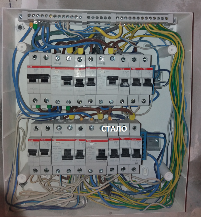 Так как начались уже не здоровые терки, то к делу присоединился тот "удаленный специалист" со знаниями электрики. Он у них является более "опытным" спецом, он приехал на объект вместе с электриком и будущим сантехником (как я понял, или этот "европейский" спец сам отказался от сантехники в нашей квартире, или его "отказали" после косяков). Сначала разбирались с электрикой. Чему я был рад - этот "удаленный спец" оказался человеком старой закалки, который не пытается юлить и принижать мои знания (как этот "европеец"), он сразу признал косяки и потребовал у нашего электрика их переделать. Затем я сказал, что я еще не смотрел щиток и "удаленный спец" достал отвертку, вскрыл щиток и знатно охренел. Первые его слова были "Здесь все не правильно". Я полез тоже смотреть....