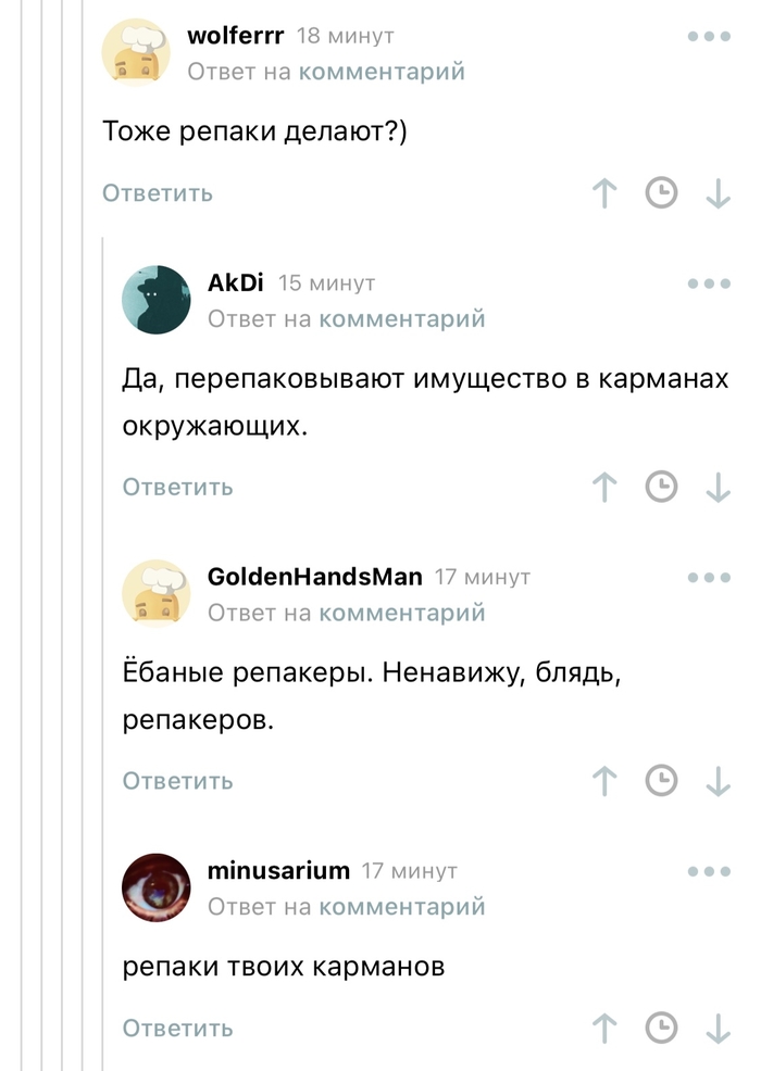 И у меня возник вопрос. На Пикабу очень не любят разного рода воров, будь то чиновник с миллиардами или воришка из пятёрочки. Если, например, появляется пост про чинуша, то все пишут «ну а что вы хотели, Россия, ничего нового». Напишут про воришку в супермаркете, самый топовый комментарий типо «сами тащут по мелочи, а потом недовольны уровнем коррупции и тд»