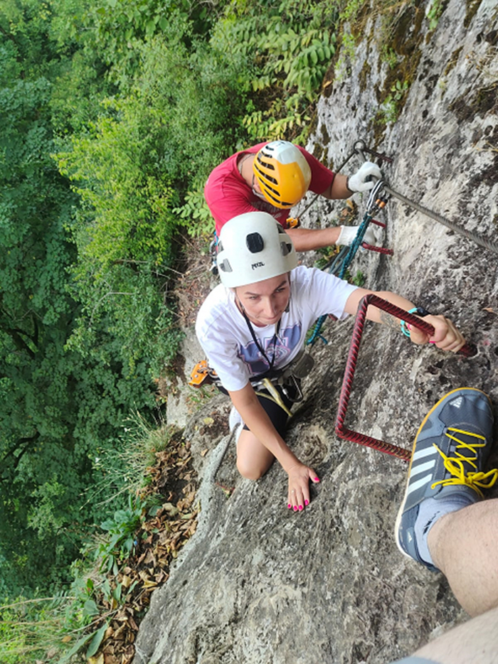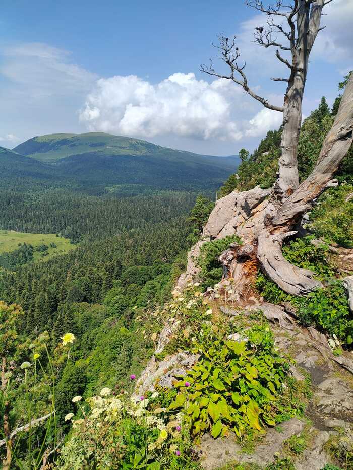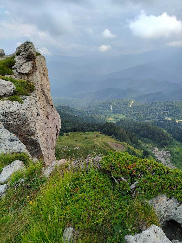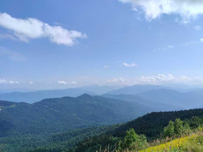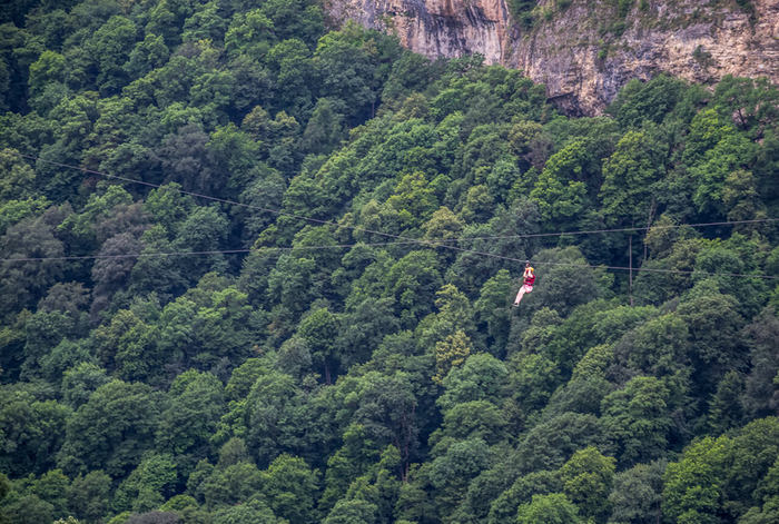 Ничего со мной не произошло! Вообще! Совсем! Ни на самой вершине, на которую мы благополучно долетели и ходили от одной обзорной площадки до другой, на самой «птичьей» высоте, ни при спуске, ни позже на более конкретных высотах гор Западного Кавказа, по которым мы скакали ещё целую неделю! Я лазил по веревочным лестницам, я сидел, свесив ноги над обрывом, дна которого не было видно из-за тумана, я скакал через трещины в скалах глубина которых была десятки метров! В конце путешествия я уже летел на зиплайне несколько сотен метров над ущельем Мишоко и лез по отвесной стене, с отрицательными в нескольких местах уклонами на и всё это, высоте примерно 2-2,5 км. над уровнем моря (везде, где необходимо со страховкой конечно)!