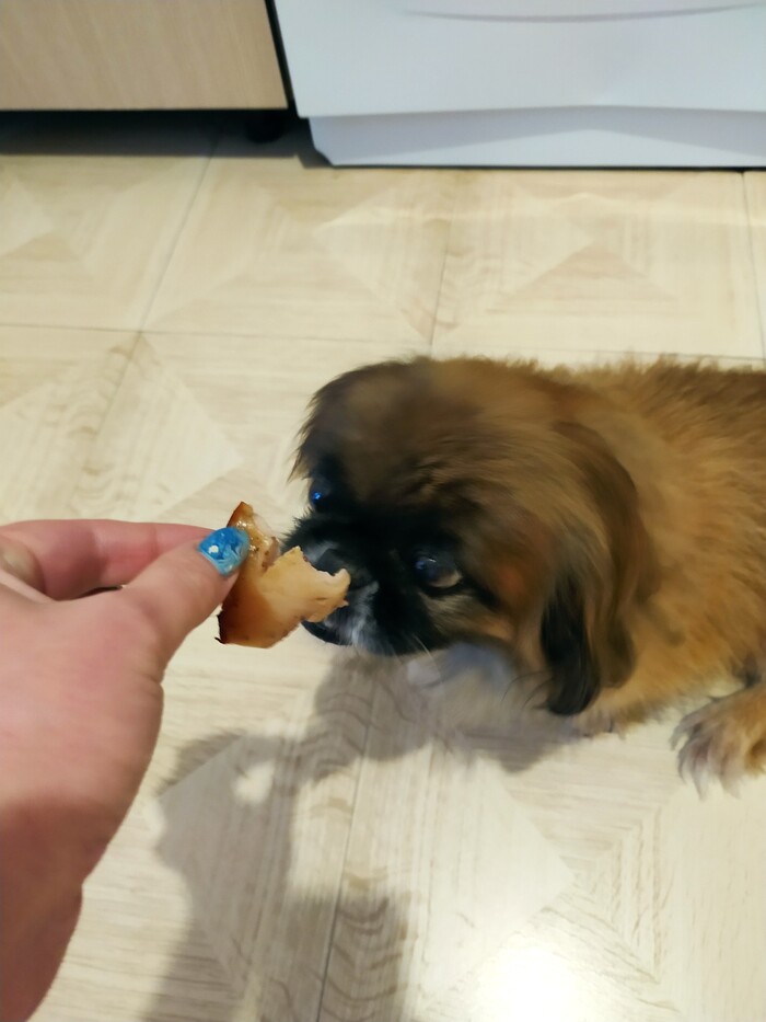 Собака в возрасте ~7 лет, метис джек-рассела, совсем маленькая и доверчивая. Белая с черными ушами и рябушками по телу.