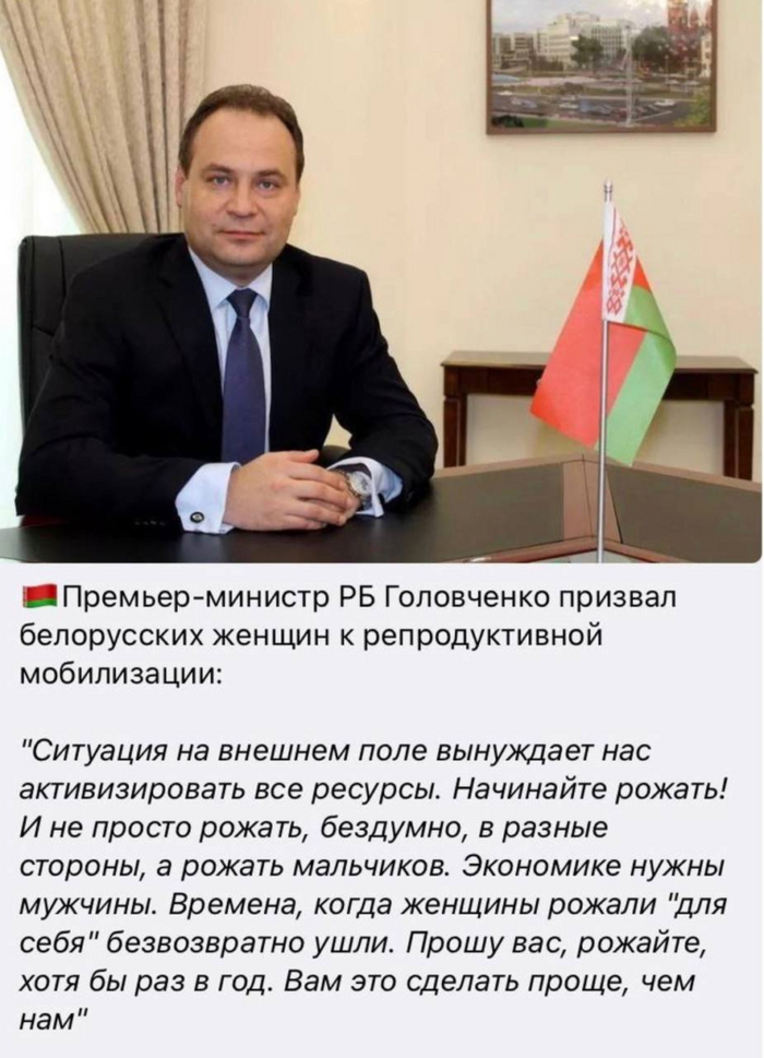 На прошлой неделе в Сети разошлась новость о том, что белорусский премьер-министр Роман Головченко призвал женщин страны рожать «хотя бы раз в год». При этом они должны постараться произвести на свет мальчиков, так как «экономике нужны мужчины». Мы проверили, делал ли политик такие высказывания.