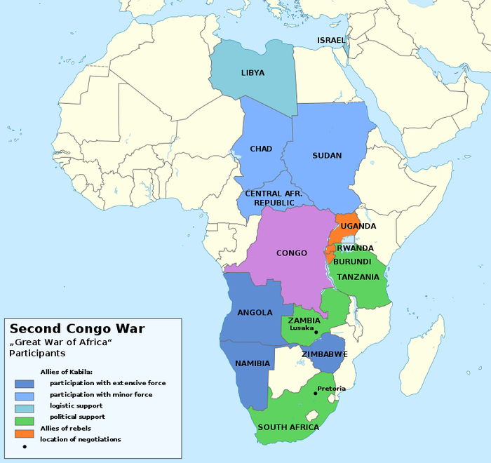 Таким образом, осенью 1998 года гражданская война в Конго перестала быть внутригосударственным вооруженным конфликтом. После вступления в нее девяти соседних стран она получила название Великой африканской войны (Африканской мировой войны). Ожесточенные бои разгорелись на востоке и юге ДРК, причем друг с другом сражались уже не только повстанцы и правительственные войска Кабилы, но и армии соседних африканских государств. Война приняла затяжной характер, а от боевых действий больше всего страдало мирное население Конго, лишенное возможности защитить себя и оказавшееся объектом насилия, грабежей и убийств со стороны всех участников конфликта.