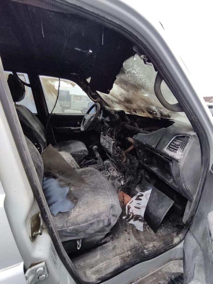 «Ездил по делам, остановился и ждал жену. Почувствовал запах, а потом увидел огонь. Тушили огнетушителем и снегом, помогали прохожие. Потом приехали пожарные и залили машину. Выгорели подкапотное пространство, навесное оборудование, торпеда, приборная панель, электрооборудование и проводка, салон, передние сидения, крыша и прочее», — сказал пенсионер.
