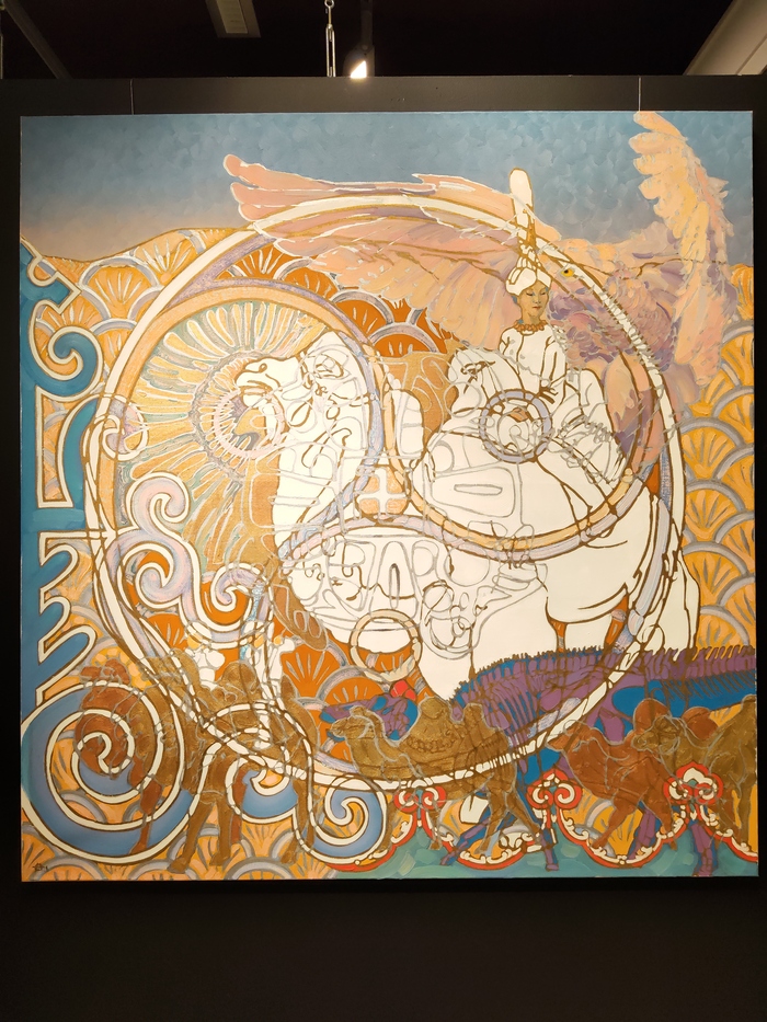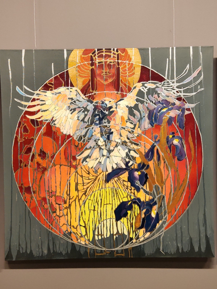 Знакомство с творчеством художницы Анны Осиповой на выставке музея Эрарта стало для меня впечатляющим открытием. Живопись эта - и продолжение традиций русской живописи (заметна связь с творчеством М. Врубеля, Н. Рериха), и часть европейской художественной культуры (продолжение исканий А.Муха и Г. Климта). Вместе с этим, полотна насыщены колоритом национальной культуры тюркских народов России, сама художница специально много путешествовала по родной Якутии, по Сибири. Её впечатляет красота и величие природы этих мест, а также народных сказаний, яркая изысканность национальных костюмов. Всё это художница умело передаёт в красках, в образах. Огромный триптих "Умай" - картина, как молитва и поэма, посвящённая великой богине Матери Природы.
