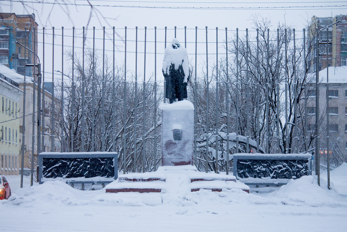 Из-за холодов даже местный Ильич надевает дополнительную одежду