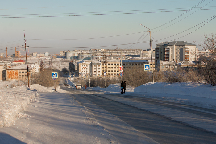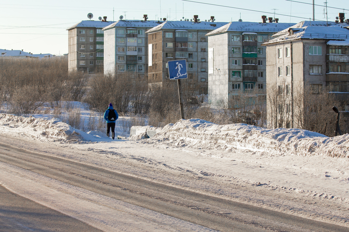 К чести местных городских служб и к позору оных на большой земле, в этом феврале дороги были образцово очищенны (насколько это возможно). А ещё здесь их посыпают не песком или солью, а шлаком с шахт. Этого добра у воркутинцев навалом.
