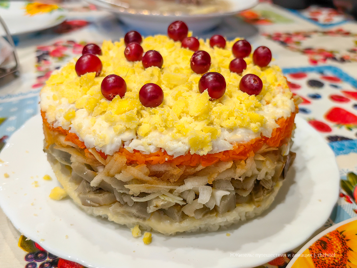 К нашему приезду хозяйка приготовила в печи обед из блюд национальной кухни и салат по своему рецепту.
